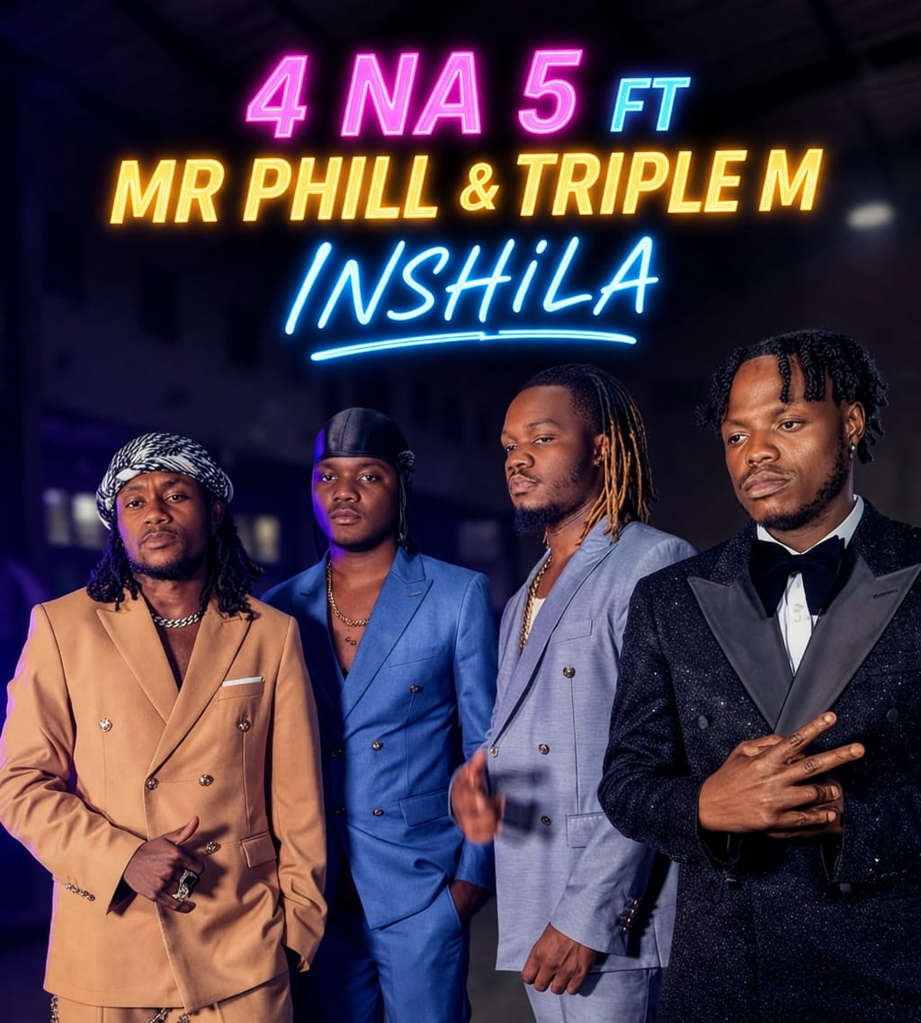Dynamic group 4 Na 5 teams up with Mr Phill and rap heavyweight Triple M on an inspiring track titled Inshila, which translates to Way. The song delivers a powerful message about life’s journey, choices, and the different paths people take in pursuit of success. Each artist brings a unique perspective, with thoughtful verses that reflect struggle, determination, and growth. Mr Phill adds a melodic touch. Triple M injects energy with his signature rap style. Backed by a compelling beat, Inshila stands out as a motivational anthem about finding your way and staying focused.